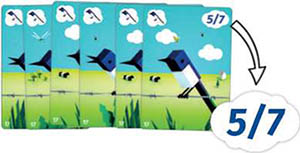 As he completes a small Flock, Fred keeps one Magpie and adds it to his collection in front of him. The five other Magpies are placed in the discard pile.