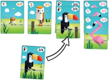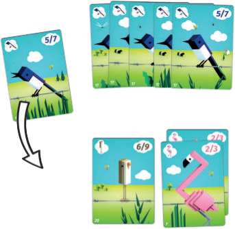 Each row must be composed of 3 different Birds. If the same Bird is present multiple times on a given row, discard the extra Birds and place new cards until each row contains 3 Birds from different species.