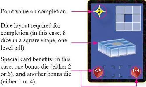 At such time as you have removed and placed all the dice from your Installation Card, flip the card over facedown in front of you. At the end of the game, you will score the points marked on the card.