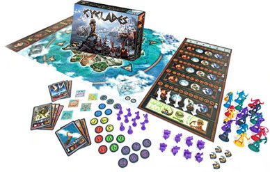 The 4 large God tiles are shuffled and placed randomly on the 4 empty spaces above Apollo's space. In a game with 5 players all 4 tiles are placed face-up.