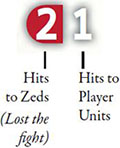 Zeds x2: When the Zeds units' Strength is at least two times greater, but less than three times greater, than the Player unit's Strength.