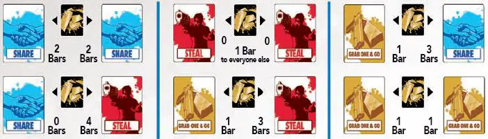 Note: in the case of a STEAL/STEAL, the Showdown players get nothing. Leave the gold at the center of the table for next round & give all other players i gold from the deck.