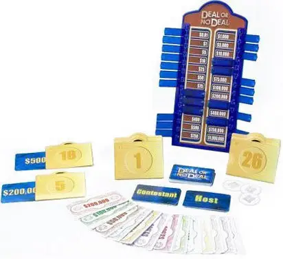 Note: If there are 3 or 4 case holders in the game, the cases will not divide evenly. Place the two remaining cases in the center of the play area where the contestant can also select them during the game.