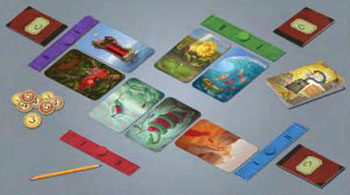 Starting with the player that sits on the left of the Active Player and proceeding clockwise, each player plays one card from his hand. Again, that card is supposed to match the word that the Active Player wrote on the notebook.