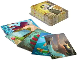 Example: Bill is a Detective. He can see that Mike wrote "nature" in his notebook, so he plays a card that displays the sea. That should be enough.