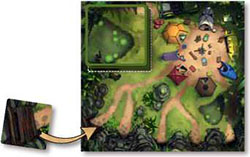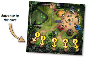 The game board represents your camp, connected to each of the entrances to the Tacora Cave by five paths. Each entrance corresponds to a round of the game.
