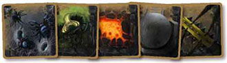 They indicate the traps that surprise you in the cave. Beware of giant spiders, snakes, lava pits, rolling boulders, and battering rams.