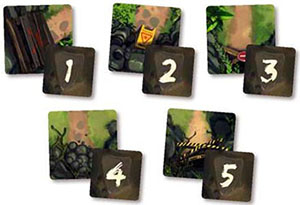 Barricade Tiles allow you to follow the progression of the game. They are numbered 1 to 5 and close the entrances to the Tacora Cave, one after the other, after each round.