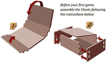 - Each player chooses a color and takes the Chest and Explorer figure of the same color. Explorer figures must be visible by all players.
