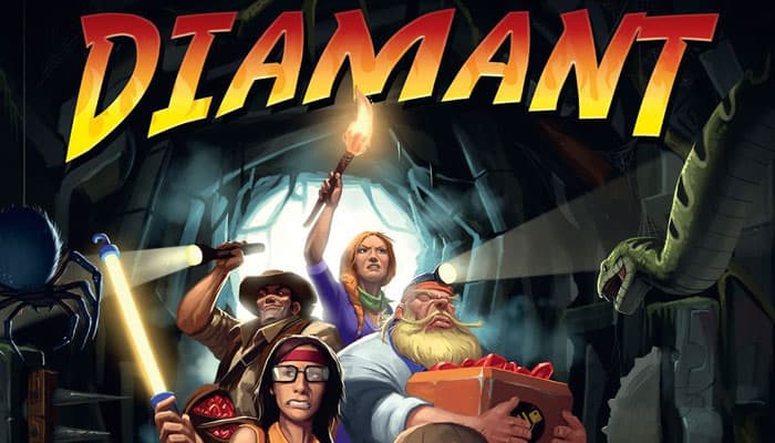 Diamant is a quick, fun game of push-your-luck. Players venture down mine shafts by turning up cards from a deck, sharing the gems they find on the way down.