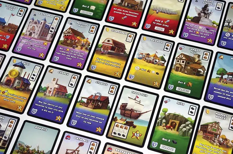 During the game, you use dice to activate locations in order to gather resources, train armies, and build even more grandiose locations.