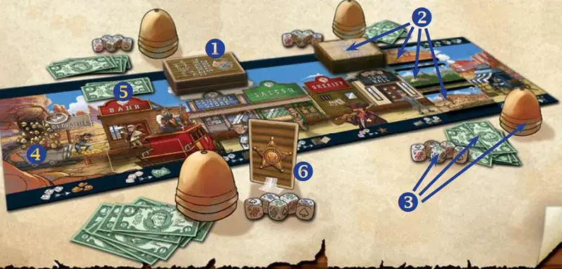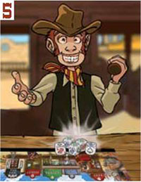 Note: it is also allowed, after a roll, to not keep any die under a player's cup... This action also costs$1, and it is placed on the Stagecoach.