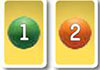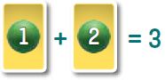 Special case: If two task cards of the same sphere color are displayed - for example, the green "1" + the green "2" - the numbers on both cards are added.