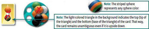 The solid-colored sphere shown on the card must not be placed on top of other spheres, although it may be located underneath other spheres. Therefore, the sphere is only positioned correctly if it is located on the bottom level.
