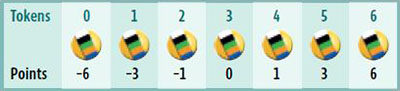 After six rounds, the players receive point tokens for their bonus tokens - see the following table.