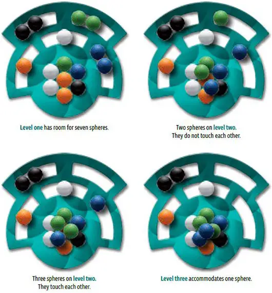 Each player tries to position his spheres as accurately as possible. During each game round, six task cards are revealed. These cards indicate conditions you must follow when placing the spheres - for example, which spheres must not be on top of other spheres or must not touch each other.