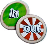 The dealer then asks players if they are IN or OUT. All players then reveal their tokens to the other players at the same time.