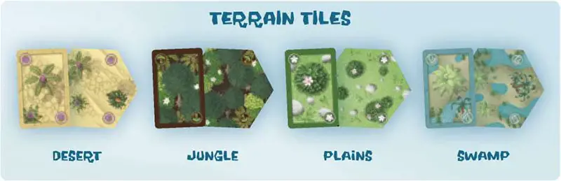 Some movement cards show all four terrain types on their face. These are wildcards, and can be used to advance your dino to the next tile, no matter the type.