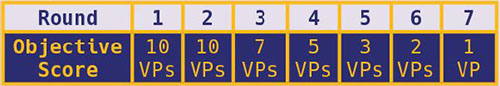 Hint: To score the 10 VP bonus, you need to score exactly one objective in each round, which is why you might decide not to score multiple completed objectives in the same round.
