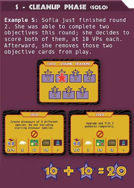Instead of the standard objective cards, use the solo objective cards. Shuffle all 16, then draw 10. Of those 10, choose 7 that will be In play this game, and place them face- up.