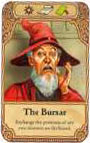 Example: If you played the Bursar card then you would first draw a Random Event card, you would then have the option to swap the positions of two minions (as written at the bottom of the card).