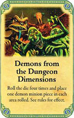 Roll the die four times and place one demon minion piece in each of the areas matching the numbers rolled. More than one demon can end up in an area.