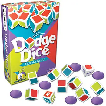 Collect the fewest points by rolling dice and not having the Action die land on the Stop icon or by not rolling the final matching Dodge die to end a round.
