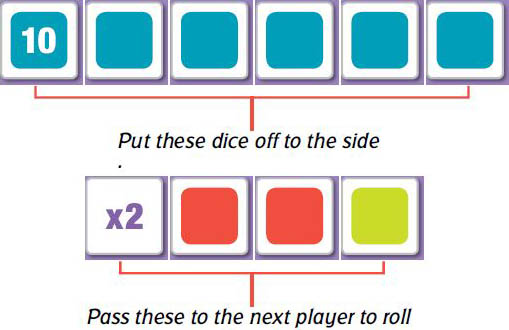 In either case, record the points, gather all ten dice, and pass them to the player on the left to start a new round.