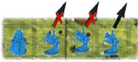 Example: Orange expanded into Blue s Domaine. Orange gains 4 victory points. Purple loses 6 victory points since two forests were lost to the neutral zone just created,