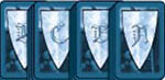 Each player chooses a color and takes all the matching pieces and (he crest token of that color: Each player receives 15 knights and 4 castles (3 castles when playing with four players)