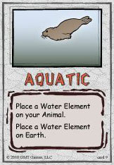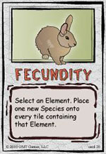 Take the chosen element from the draw bag. If there are no vacant corners on any sea or wetland tiles currently in play the first part of this card is forfeit. If you have no species remaining in your gene pool the second part of this card is forfeit.