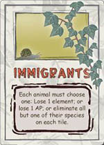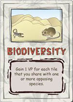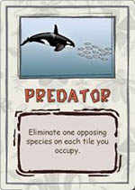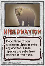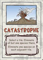Note the word "opposing" on this card: you don't have to eliminate one of your own species on tiles containing only your species. You may choose a different opposing animal's species on each tile.