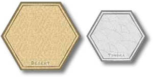 The large and small hexagonal tiles will, when added to the game board's hexagonal play area, make up the "earth"- the playing surface that much of the game will be focused on.