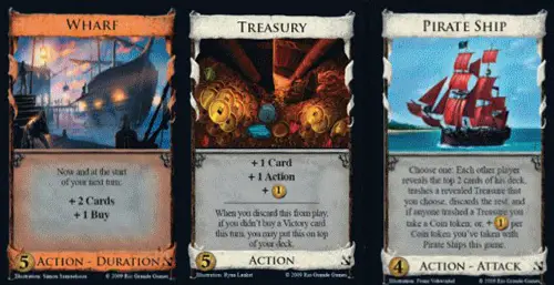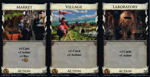 With the first set alone there are 3,268,760 combinations of 10 cards you can play with; with all of the expansions included, that number goes up quite significantly. A smart guy once said, "variety is the lubricant for re-playability". Here's a few very basic Action Kingdom cards: