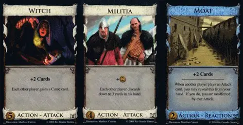 For example, the very basic discard attacks will always only make a player discard down to a certain number. If you are in a 5 or 6 player game and everyone is playing Militias, you will only have to discard down to 3 cards no matter how many are played allowing to you at least play something on your turn and not be completely dead in the water.