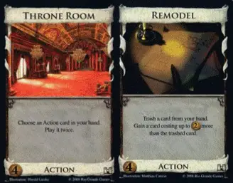 You want combos? We got combos! My all time favorite winning combo ended the game quickly with just 5 cards left in my deck. The card pool had Chapel, Throne Room and Remodel. My first two turns I purchased a Remodel and Chapel.