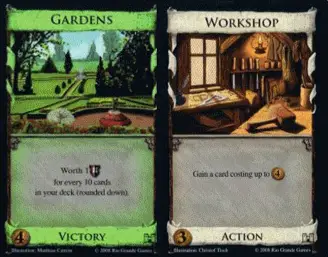 If you can't afford an Estate buy a Copper for free. That's it; if your opponents don't catch on and start stealing Gardens from the supply you'll be amassing a huge deck at two cards gained per turn making your Gardens worth a lot of Victory Points. You'll end the game by depleting the Workshop, Gardens and Estates piles. I've had 50-60 card decks by the time the smoke cleared.