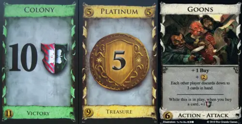 Prosperity is probably my favorite set. It introduces a go big or go home kind of theme, where everything is turned up to eleven. Two Basic Supply cards are added to the original 7 in the Basic Supply if you are playing with only Prosperity in your supply of 10 Kingdom cards.