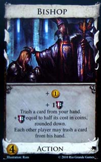Bishop![]() | Action | $4 | +$1 +1 VP Trash a card from your hand. + |