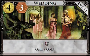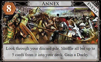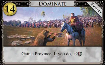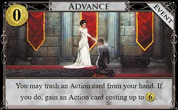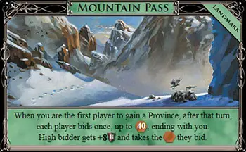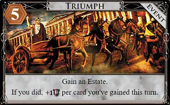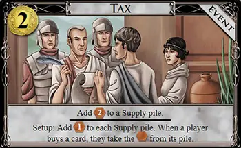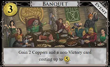 , including Kingdom cards and basic cards like Silver. The Event itself, when bought, adds to a single pile, whether or not that pile has any on it already. The is taken by the next player to buy a card from that pile; gaining a card without buying it leaves the on the pile.