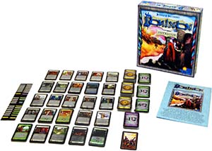 Intrigue adds 25 new Kingdom cards to Dominion. There are victory cards that do some new things for you, underlings that give you a choice as to what they do, and a variety of other people and places. These cards can be played with the cards from the basic game or on their own.