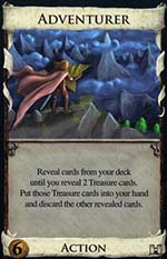 Actie | $6 | Toon kaarten van uw dek totdat je 2 treasury kaarten getoont hebt. Steek die Treasure kaarten in je hand en gooi de andere getoonde kaarten opzij. |