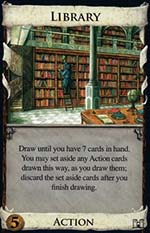 Actie | $5 | Trek totdat je 7 kaarten in je hand hebt. Je mag elke getrokken actie kaart opzij leggen. |