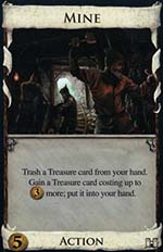Actie | $5 | Verwijder een kaart van je hand. Verkrijg een treasure kaart die maximaal $3 meer kost en steek deze in je hand. |