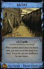 Actie – Reaction | $2 | +2 kaarten Als een andere speler een aanvalskaart speelt, heeft dit geen effect op jou. |