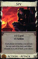 Actie – Attack | $4 | +1 kaart; +1 Actie Elke spler toont de bovenste kaart in zijn dek en legt hij ze terug of legt hij ze opzij. |