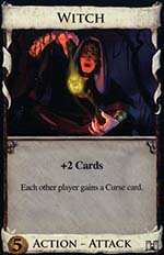 Actie – Attack | $5 | +2 kaarten Elke andere spler ontvangt een vloek kaart. |