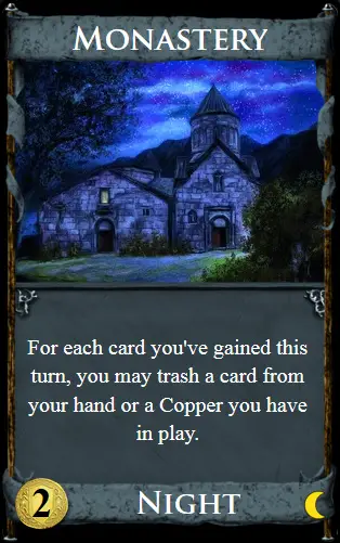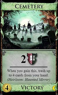 In games using this, replace one of your starting Coppers with a Haunted Mirror. When you gain a Cemetery, trash from zero to four cards from your hand.