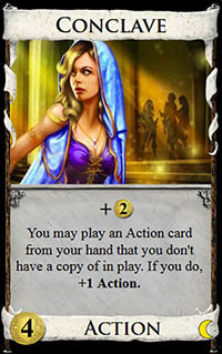 When you play this, you can play an Action card from your hand, provided that you do not have a copy of that card in play.