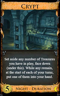 For example if you set aside three Treasures, then at the start of each of your next three turns you will put one of them into your hand, and at the end of the last of those turns you will discard Crypt from play. The Treasures are facedown; you can look at them at any time, but other players may not.